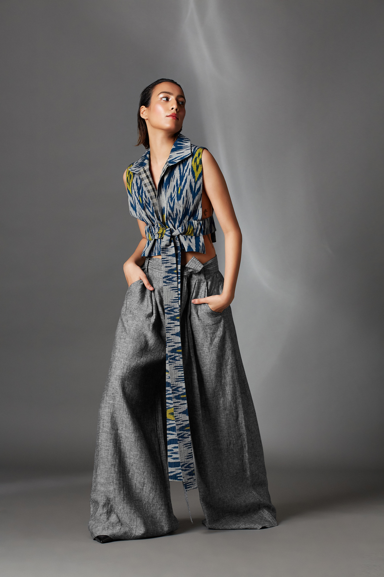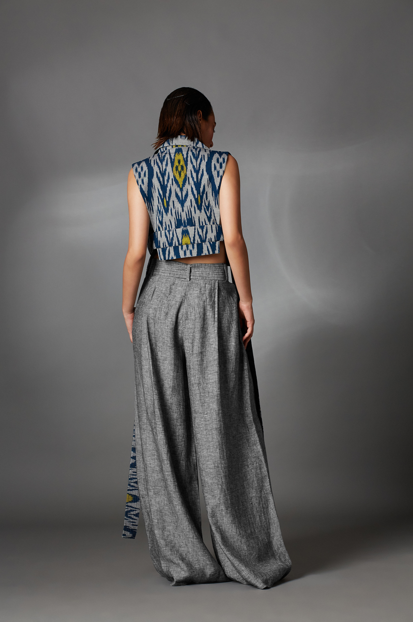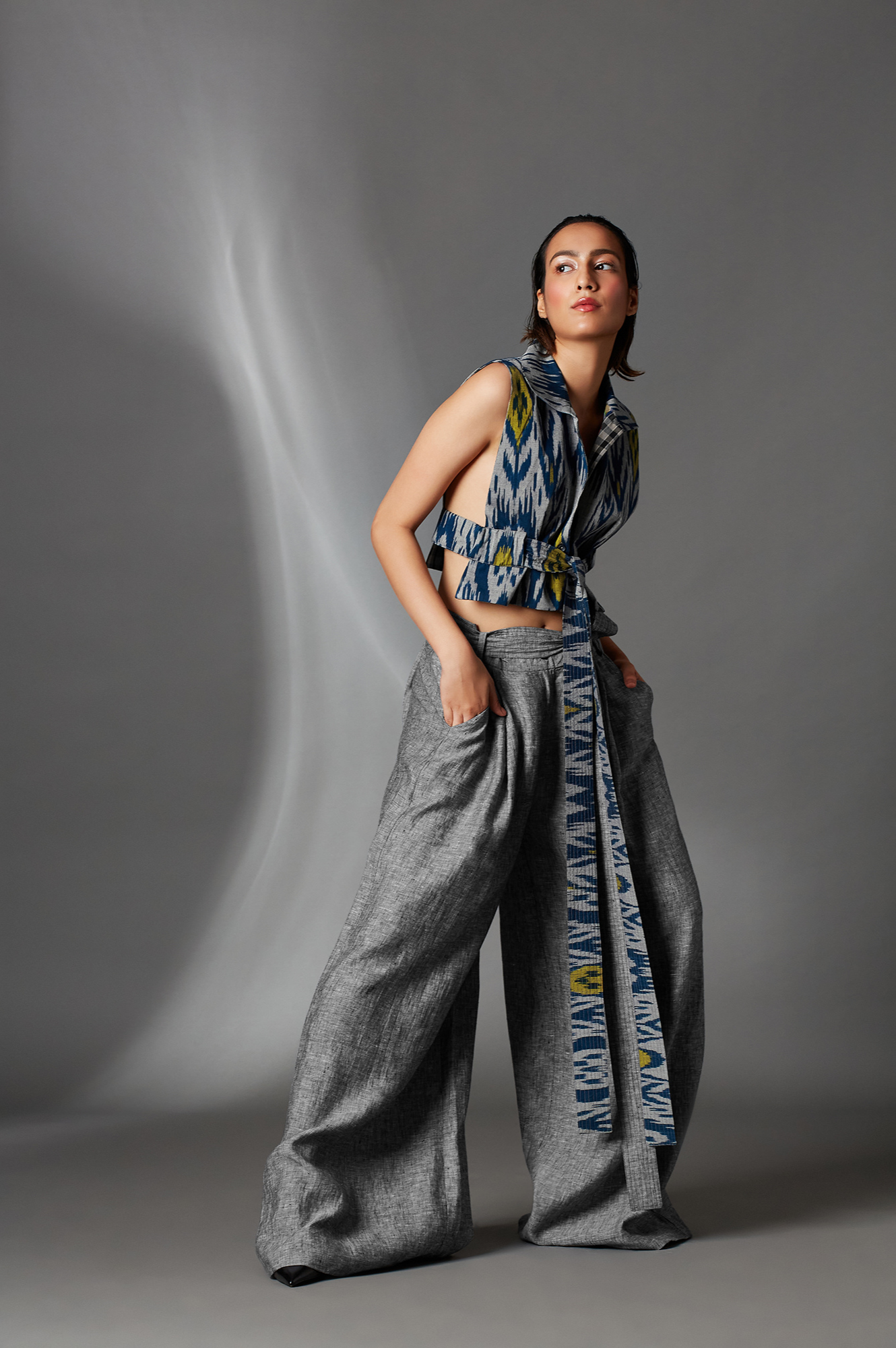 Dustin is a pair of Pleated Trousers with side pockets, button fastening and a zip. It has loops and a belt at the waist that can be styled in different ways.
