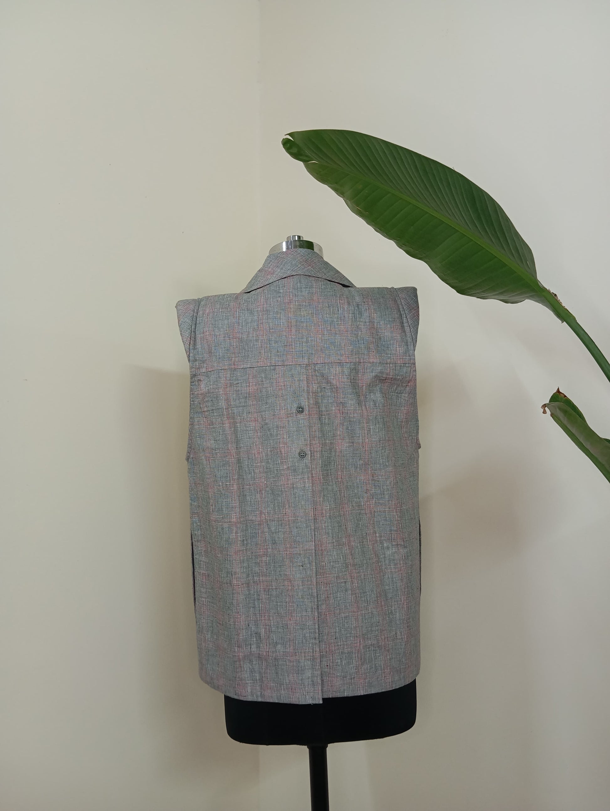 Ember exhibits a short length, notched lapel, shoulder extensions, back buttons and a lining.
