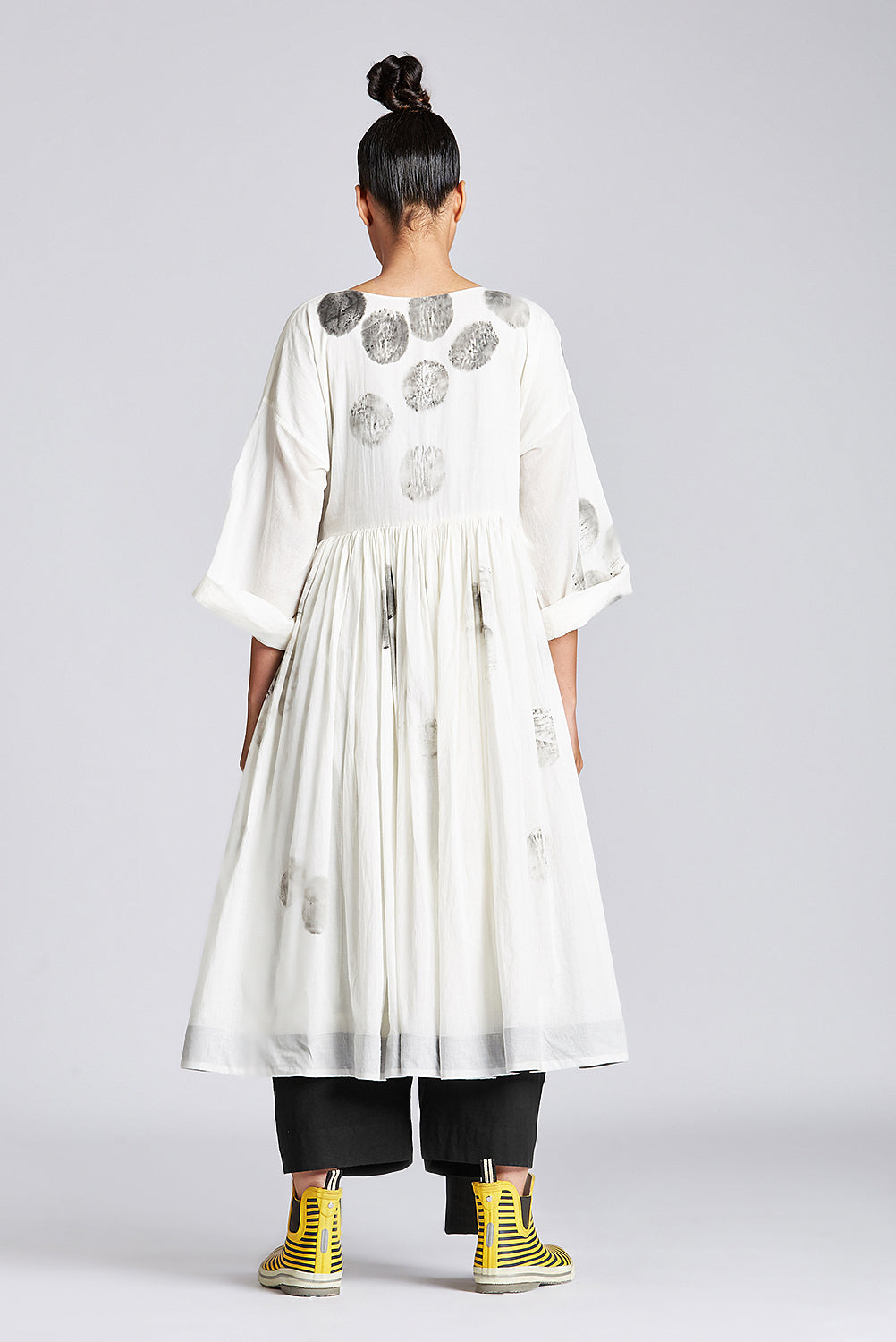 Our Heather painted Frill Dress features a V-neck with a front tie-up, drop shoulder and three-fourth sleeves.
