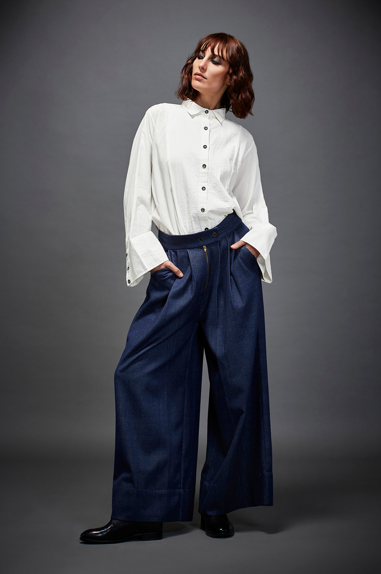 Jason is a pair of double Pleated Trousers with side pockets, button fastening and a zip.