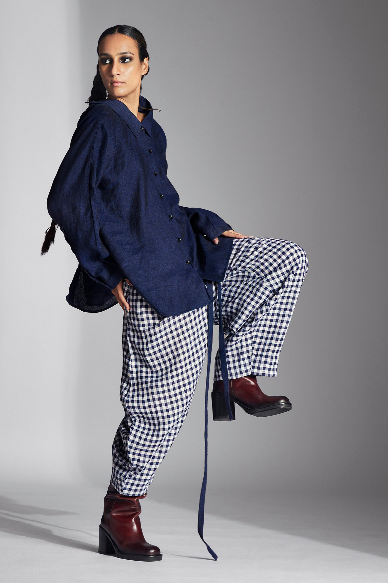 The Leor shirt features a two-way style with shirt collar, front and back button placket and lantern full sleeves.