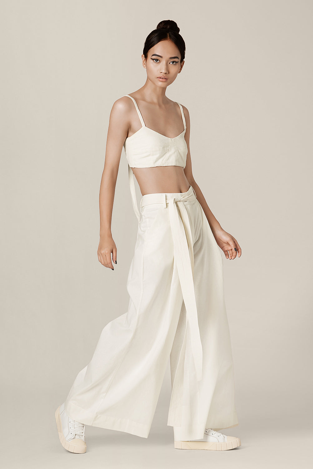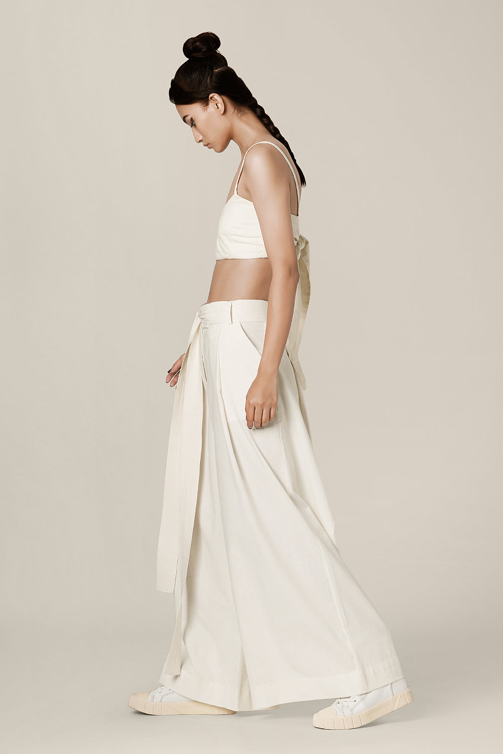Neo is a pair of Pleated Trousers with side pockets, button fastening and a zip. It has loops and a belt at the waist that can be styled in different ways.