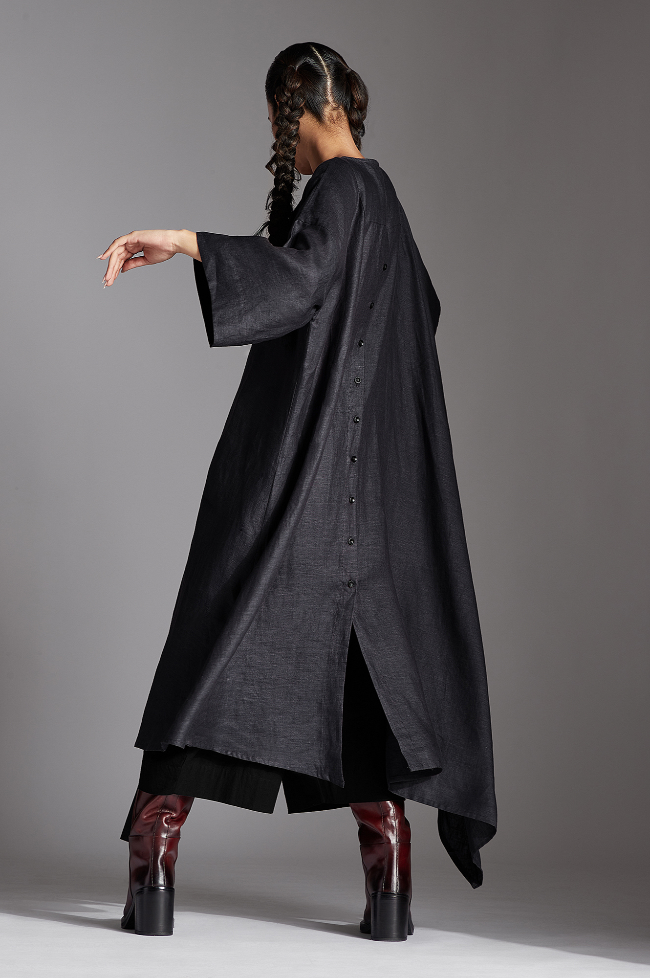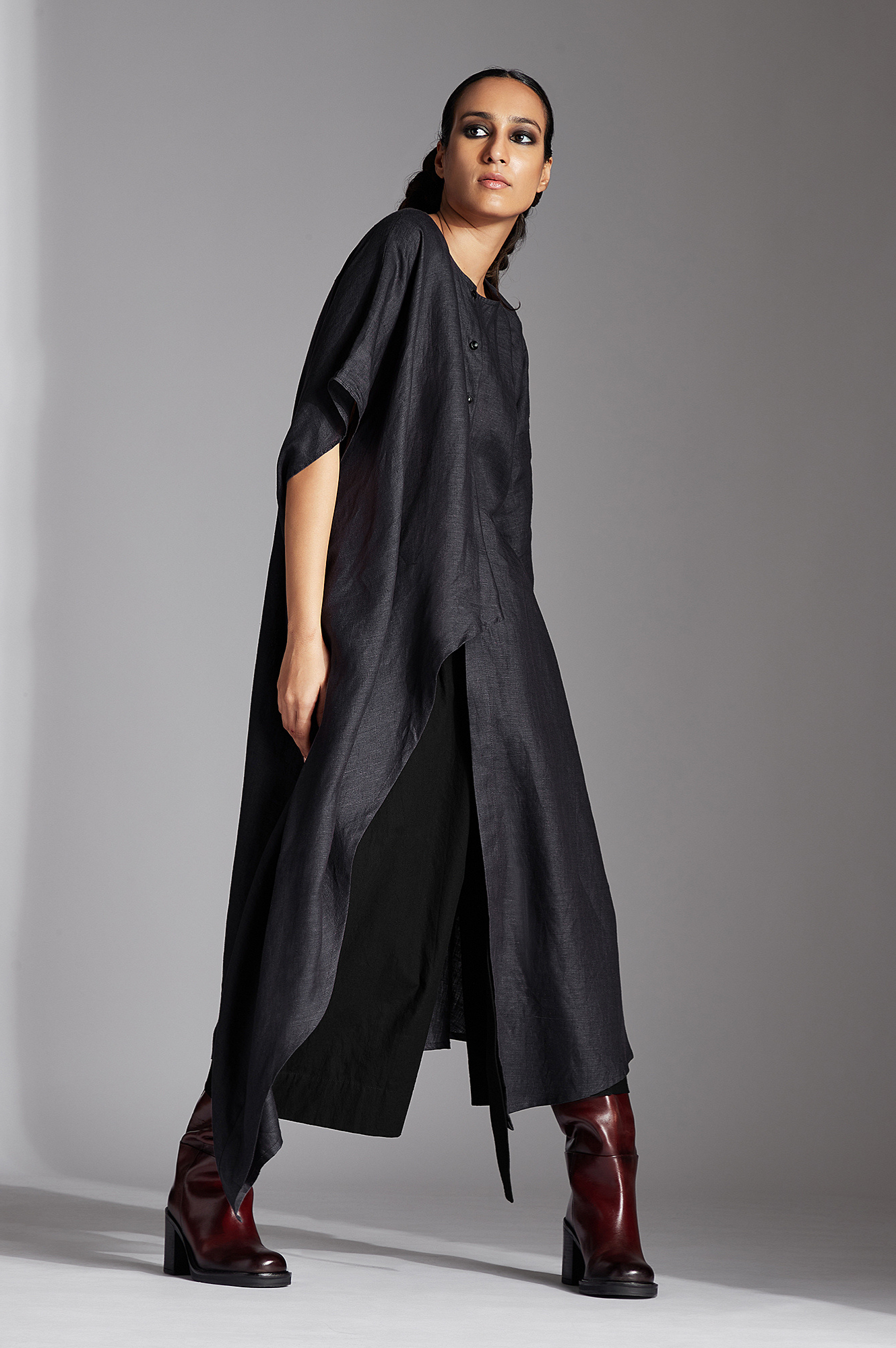 The Nysa shirt features a half kaftan style with band collar and front and back button down placket.