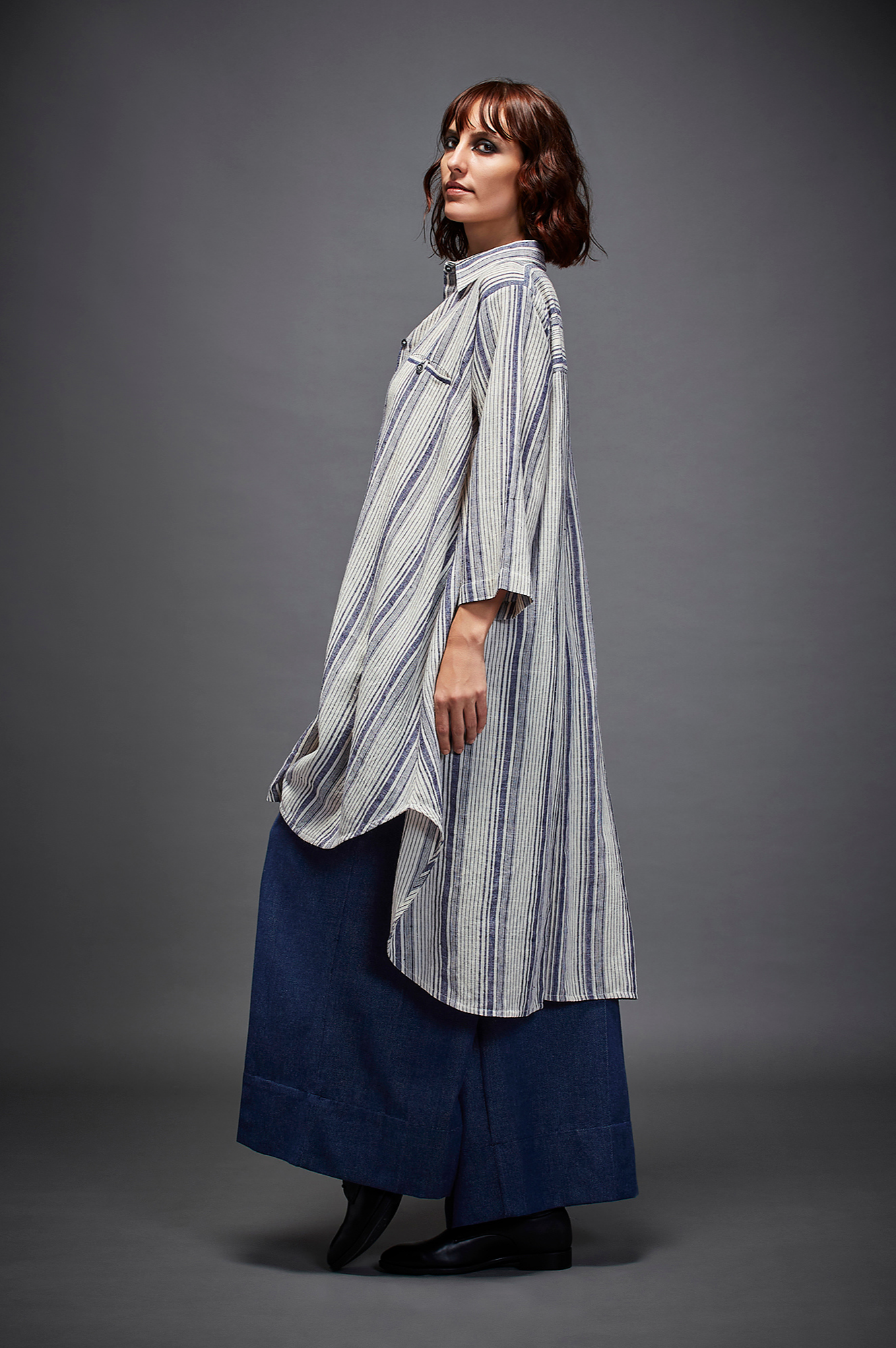 The Ollie shirt features a shirt collar, half-front button-down placket and box pleat detail. Further it has a yoke and buttons at the back.