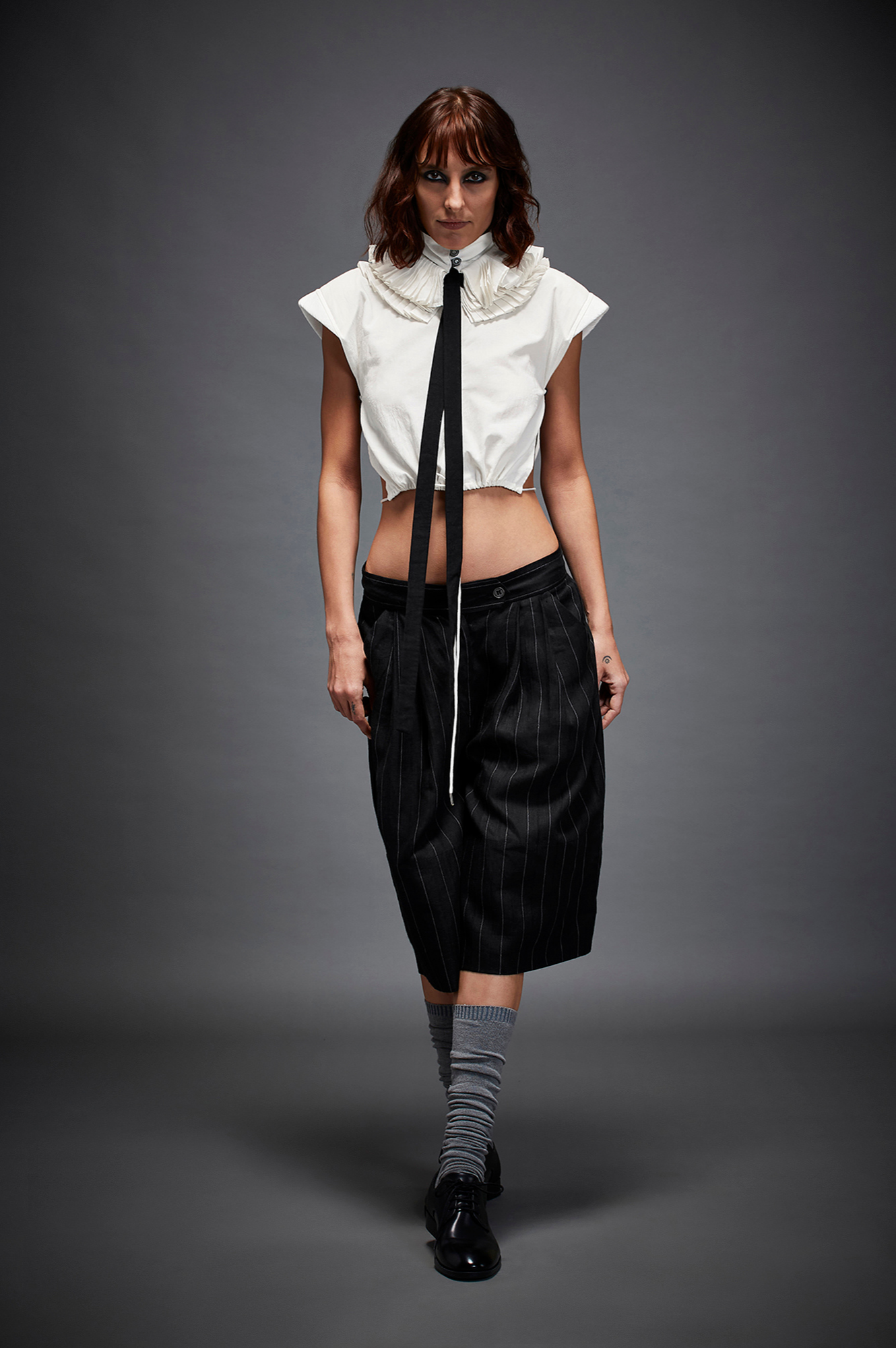 Zander is a pair of short double Pleated Trousers with cross pockets, button fastening and a zip.